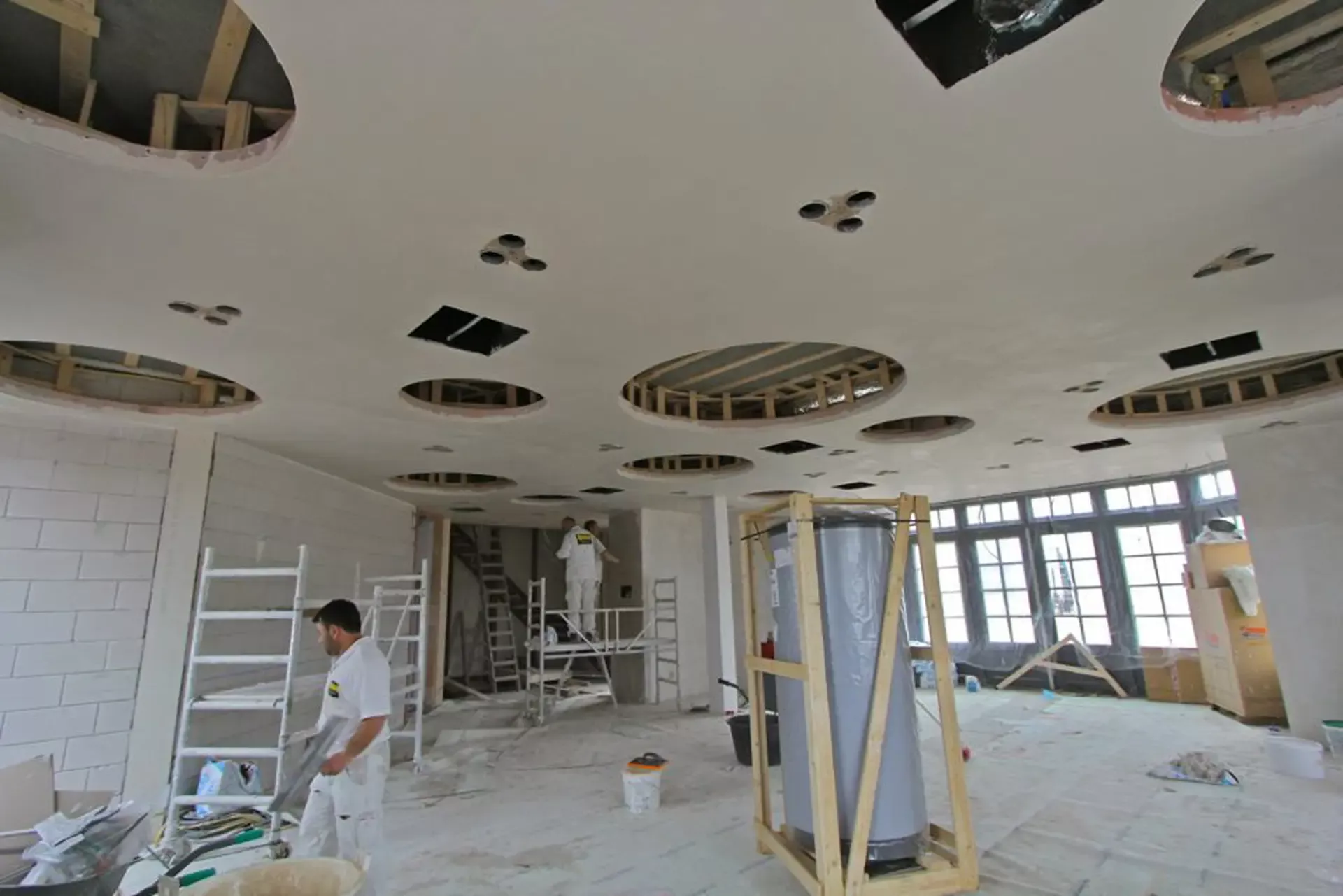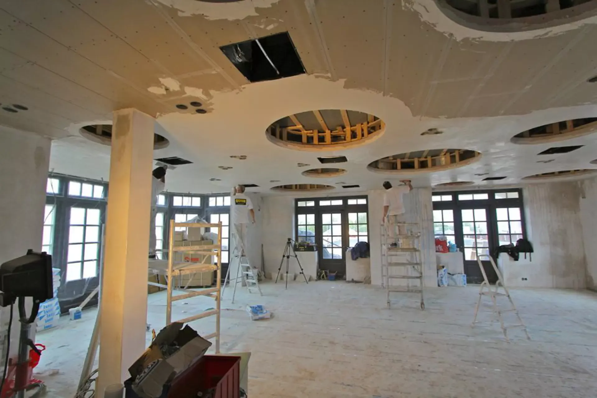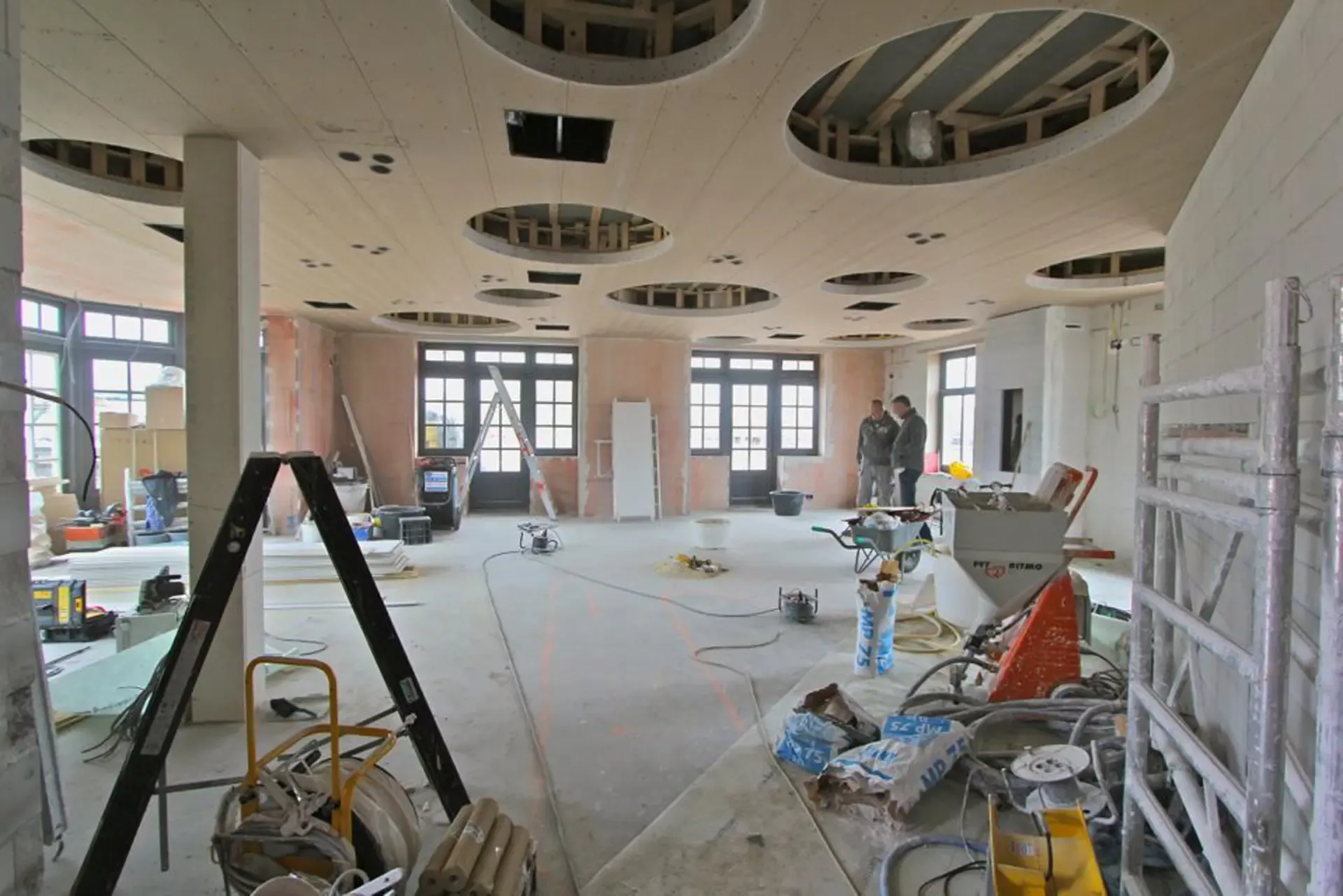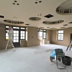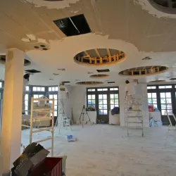 Voor het club/restaurant hebben we gebruik gemaakt van het innovatieve Diamant pleister van Knauf, een stucmortel die vele malen sterker is dan de gangbare materialen. Dit zorgt voor extra duurzaamheid en weerstand. Uiteraard hebben we alles afgewerkt met een hoogwaardige, goed reinigbare buitenkwaliteit muurverf, om de ruimtes niet alleen stijlvol, maar ook onderhoudsvriendelijk te maken.
