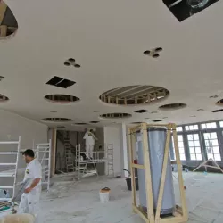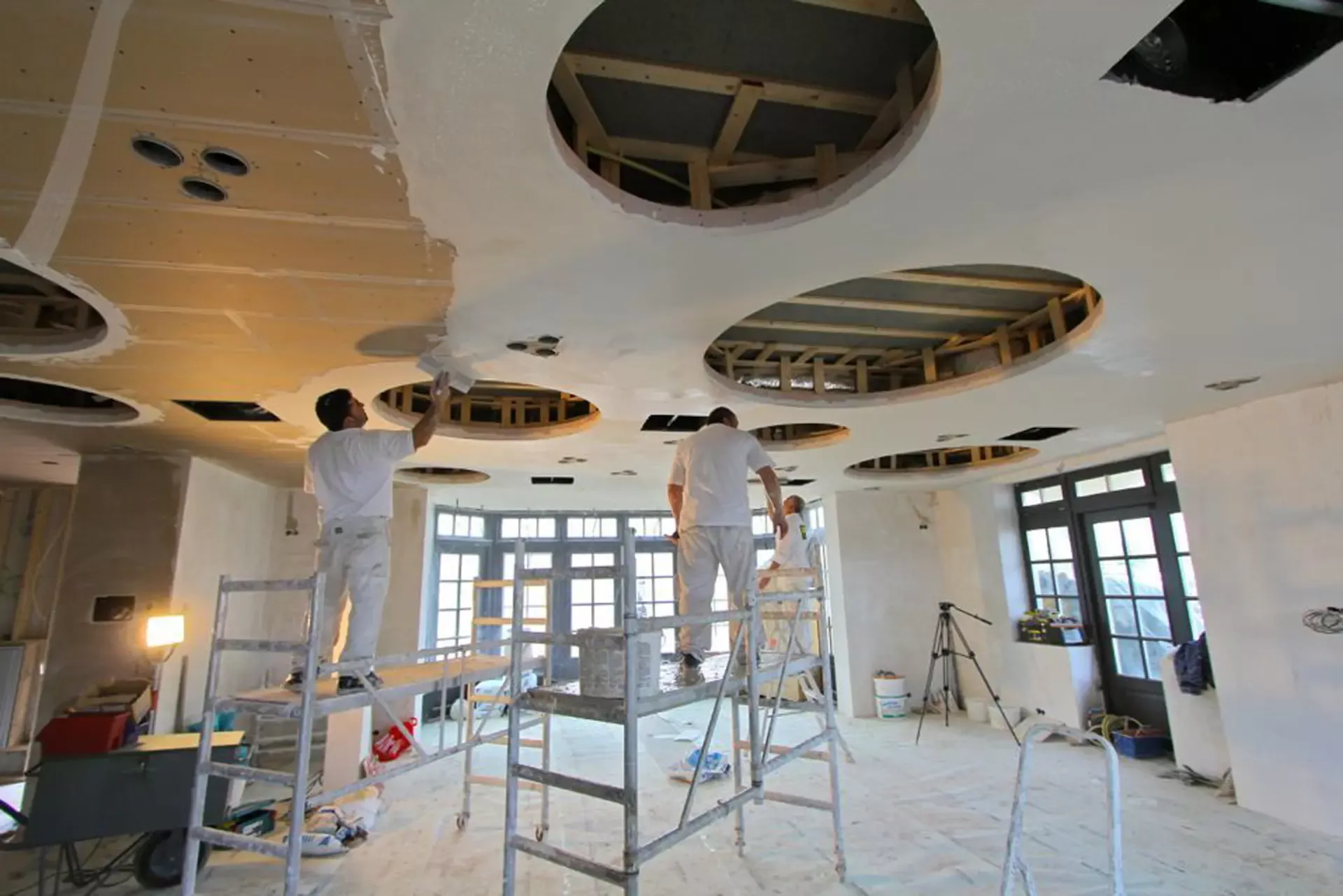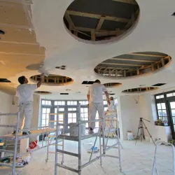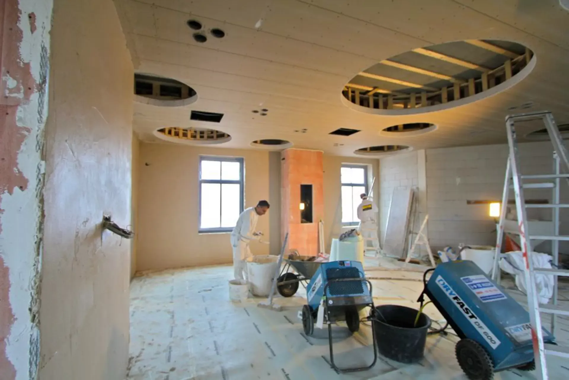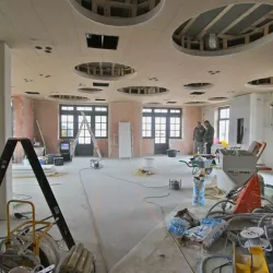 Voor het club/restaurant hebben we gebruik gemaakt van het innovatieve Diamant pleister van Knauf, een stucmortel die vele malen sterker is dan de gangbare materialen. Dit zorgt voor extra duurzaamheid en weerstand. Uiteraard hebben we alles afgewerkt met een hoogwaardige, goed reinigbare buitenkwaliteit muurverf, om de ruimtes niet alleen stijlvol, maar ook onderhoudsvriendelijk te maken.