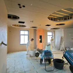 In het Nautisch Kwartier in Huizen is recent de nieuwbouw van diverse horecagelegenheden voltooid. Wij kregen de eer om het stucwerk en spuitwerk van maar liefst 1.100 m², verdeeld over drie etages, te verzorgen.