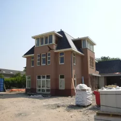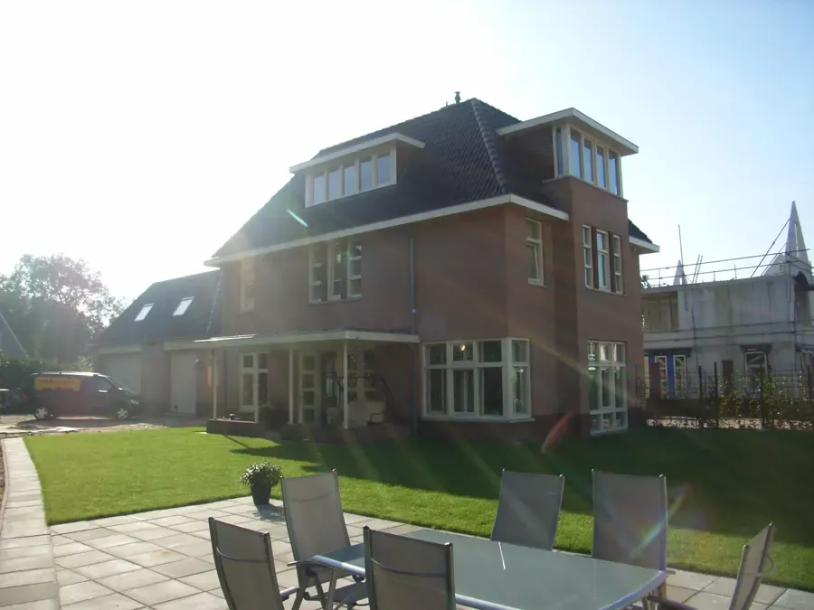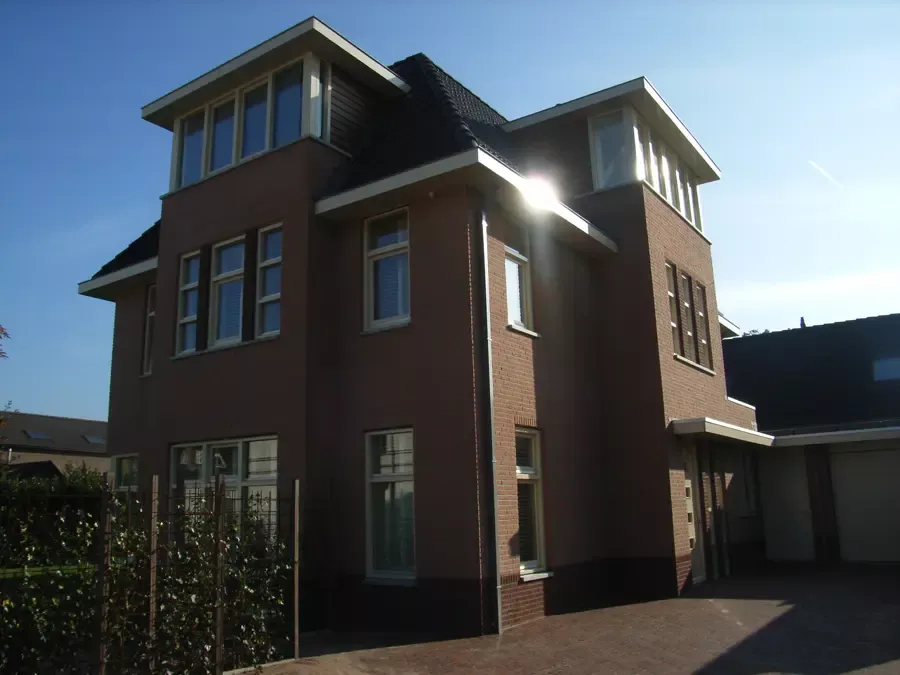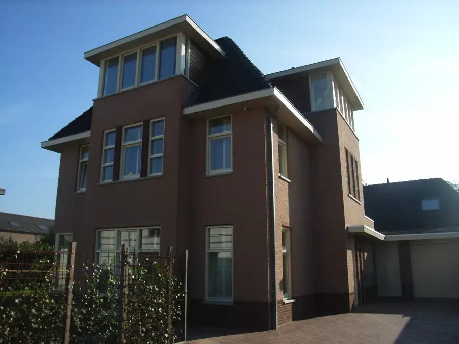 In Kortehoef is een volledig nieuwe wijk ontwikkeld, en het grootste huis hiervan hebben wij vanaf de bouw tot in de puntjes afgewerkt. Zowel binnen als buiten hebben we al het houtwerk in hoogglans geschilderd en de wanden en plafonds voorzien van spuitwerk met afneembare matte verf. Drie jaar later hebben we het gehele pand zorgvuldig geïnspecteerd en bijgewerkt. Na nog eens drie jaar hebben we alles opnieuw geschilderd om de kwaliteit en uitstraling te waarborgen.