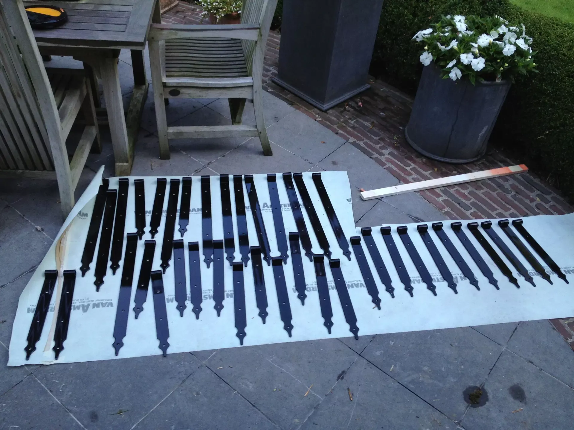 Voor de carport hebben we een tijdelijke spuitcabine ingericht om de luiken te spuiten, terwijl de rest van het houtwerk met de hand is geschilderd. Binnen hebben we alle oppervlakken gespoten voor een uniforme en strakke afwerking.